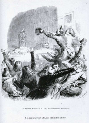 The large crowd that attended the premiere was full of conservatives and censors who booed the show for disobeying the classical norms and who wanted to stop the performance from going forward. But Hugo organized a Romantic Army of bohemian and radical writers to ensure that the opening would have to go ahead. The resulting riot represented the rejection in France of the classical traditions and the triumph of Romanticism.Hugo’s Romantic army of writers and artists attacked Classicist positions and called for “Down with theories and systems! Let us tear away the old lath-and-plaster hiding the face of art! There are neither rules nor models; or, rather, no rules but the general laws of Nature!”